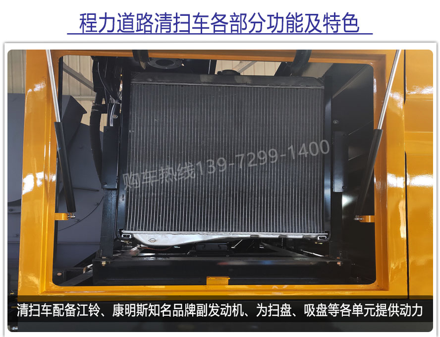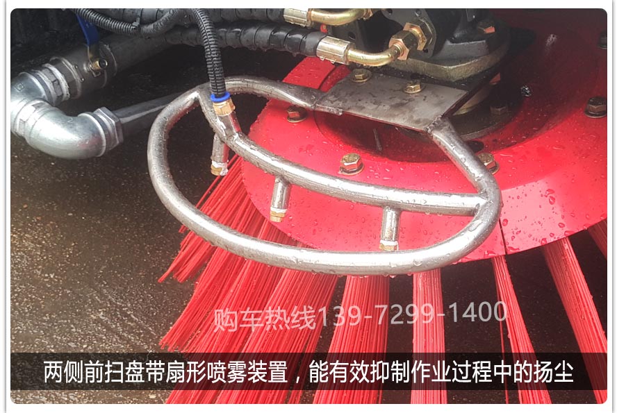 二、上裝配置: 1、帶2個中置掃盤;中置超寬吸嘴;雙層吸塵筒;康明斯170馬力副發動機,3800軸距多利卡配江鈴64kW增壓副發動機;臺灣液壓閥;大力馬達;德國高壓水泵(前沖/側噴/中噴/后噴霧)/側沖洗水槍/垃圾箱自潔裝置);萬向高壓路沿清洗;威龍低壓泵(前沖),氣動球閥控制;4mm不銹鋼垃圾箱;不銹鋼水箱;德國控制器;尾部箭頭燈;機油、垃圾箱、水箱均帶防溢或低位報警裝置;倒車及洗掃狀態室內監視器;多種語音提示;倒車自動保護、防傾倒垃圾翻車保護、檢修安全保護;20m高壓沖洗卷盤;刷臂轉動機構使用德國進口高新耐磨工程隔套