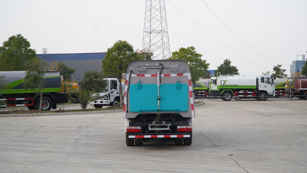 3、掃路車采用東風(fēng)純電動二類汽車底盤改裝,加裝風(fēng)機(jī)、清水箱、垃圾箱、左右立掃、帶噴水桿的寬吸嘴、掃盤降塵系統(tǒng)、液壓系統(tǒng)、專用裝置電控系統(tǒng)和副車架等改裝而成。