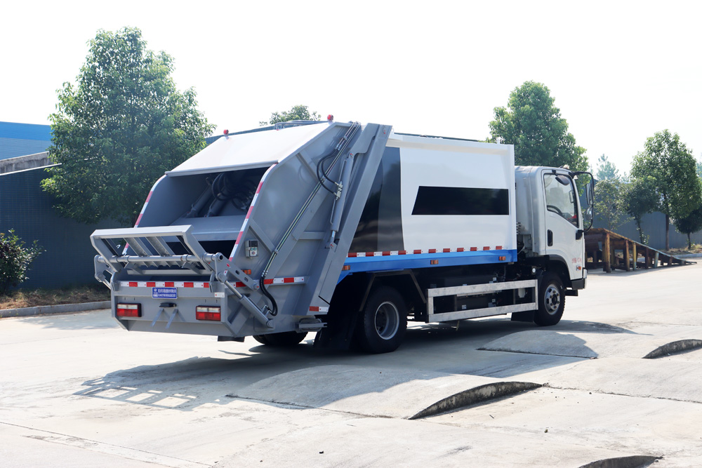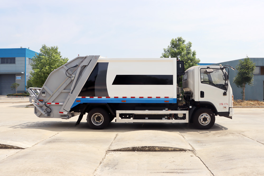 壓縮垃圾車介紹及性能特點: 領先技術:采用國內領先技術高強度的U形整體成型桁槽,作為垃圾推板的活動導軌,受壓能力強,抗變形能力好。