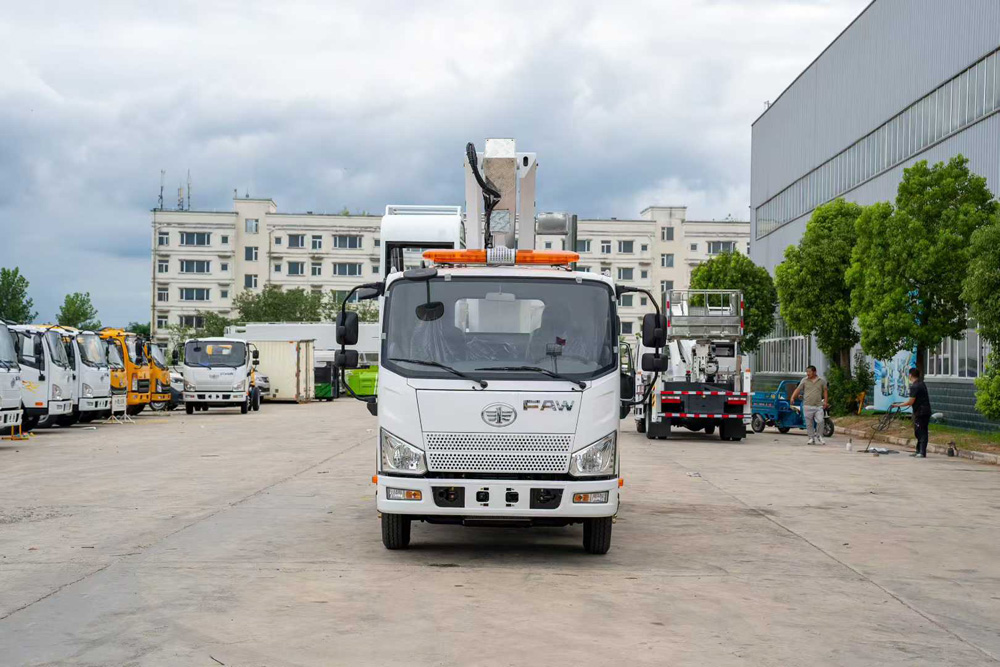四、其他說明: 該車專用裝置為升降平臺和作業臂,用途為搶修電力、通訊、路燈等高空作業.該車后伸為:240mm.防護材料:Q235A碳鋼,連接方式:側防護為螺栓加焊接連接,后下部防護裝置為焊接連接.后部防護斷面尺寸(mm):100×40,后部防護離地高度(mm):395.ABS生產廠家/型號:1.浙江萬安科技股份有限公司/VIE ABS-II.2.廣州瑞立科密汽車電子股份有限公司/CM4YL.