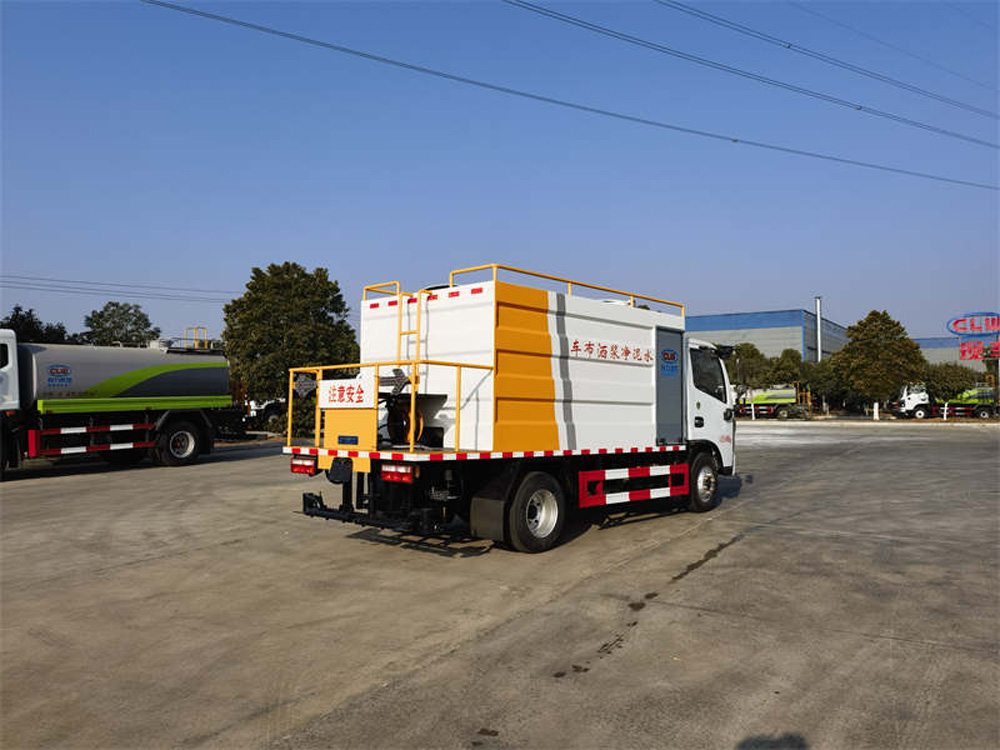 四、其他說明: 水泥罐、清水罐采用 Q235 優質碳鋼制作,高壓水泵,水泥砂漿泵(專用),攪拌系統,液壓系統,15 米高壓清洗管道(帶卷盤、手持清洗槍),尾部 13 個水泥漿專用噴頭,最大灑布寬度 4 米。其它配置常規,可選裝袋裝水泥提升裝置(用于袋裝水泥向罐體頂部運輸)。