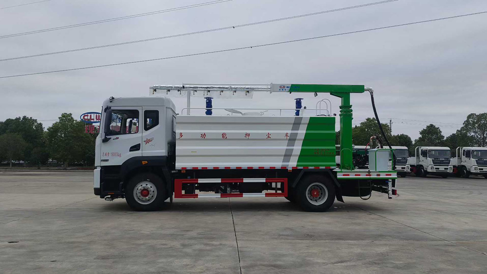 三、多功能抑塵車工作原理:霧炮機將水高壓霧化為50μm左右的細小顆粒,再通過遠程風炮將水霧送至100至120米半徑范圍內,作業5分鐘即可實現覆蓋區域面積4.5萬多平方米,是局部降低因PM2.5、PM10顆粒物超標而造成的霧霾污染的理想技術,是一種更先進、更科學、能耗更低、凈化效果顯著的新型空氣凈化技術。