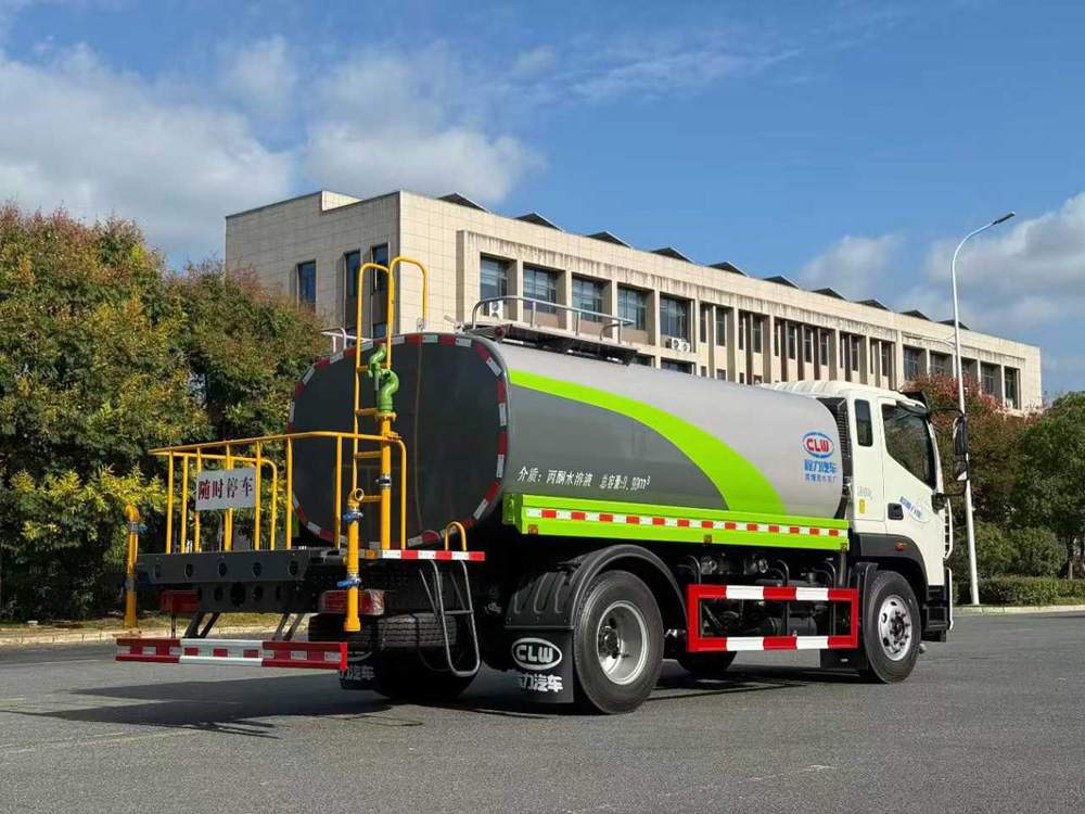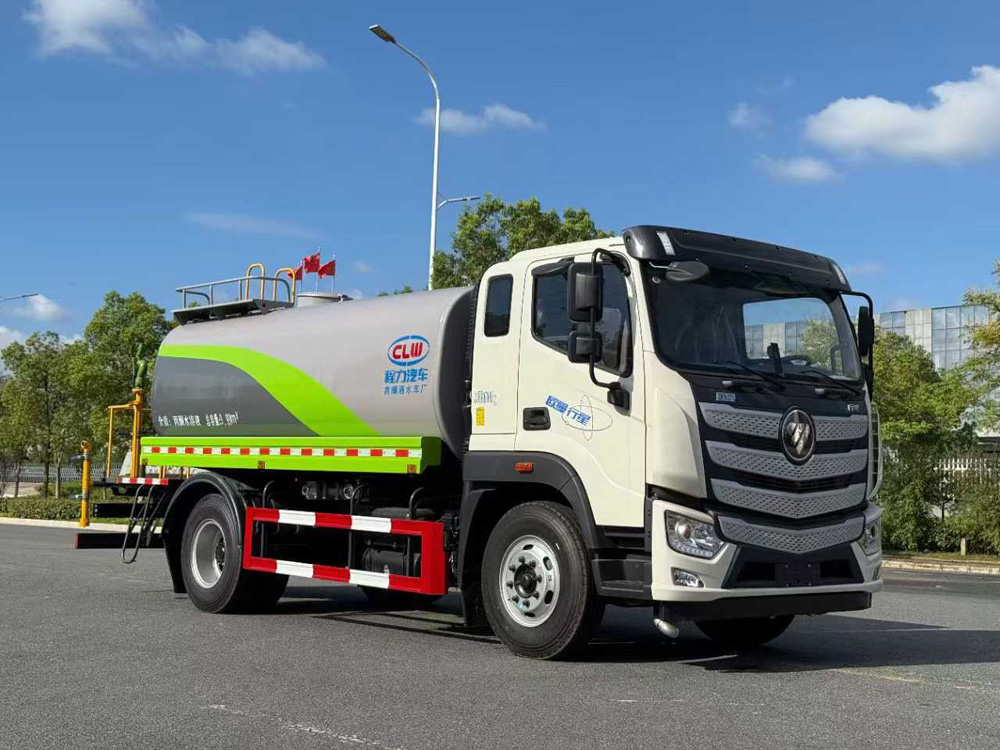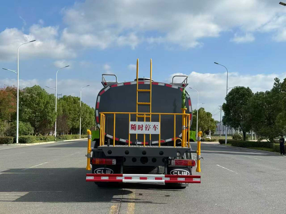 三、選裝配置: 選配駕駛室內電控氣動操作;大鴨嘴前沖噴頭壹對;萬向前沖球閥;路面沖洗水管卷盤;本田高壓水泵,水槍可沖洗人行道、移動洗車等; 藥盤;長警燈,LED箭頭燈;罐側帶閘門,罐后加裝噴霧降塵裝置;灑水車泵標配程力泵選配杭州威龍泵;可對主管道加粗,可選316大口徑球閥;罐體內防腐、保溫、襯塑處理,灑水車作運水車用可加裝自流口。運熱水罐體可做保溫,運生活用水可做食品級304不銹鋼罐體。