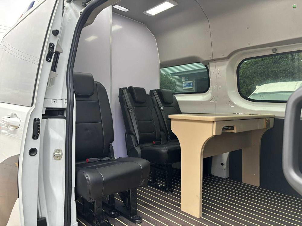 一、底盤配置: 采用依維柯商務車NJ6546FDC5C車身,配置玉柴SC20M125.1Q6發動機93/125馬力,國六排放標準,軸距3366(mm),整備質量2.49噸,額定載質量1.06噸,五擋變速箱,帶動力轉向,帶原廠空調,該車配備器械存放柜,主要用于特種人員的運送; 選裝限速裝置,發動機ECU限速,限速100km/h,SC20M125.1Q6發動機僅匹配手動變速器對應的油耗值為7.3L/100km,最高車速為156km/h; ABS生產企業:博世汽車部件(蘇州)有限公司,ABS型號:ESP9; 選裝ETC車載裝置; 該車配備汽車事件數據記錄系統(EDR); 僅采用后軸為鋼板彈簧懸架; 隨底盤選裝大燈樣式,后視鏡樣式,中網樣式; 選裝內部布局樣式,選裝低頂樣式,選裝電動踏板,選裝輪轂樣式.該車上藍牌,城區道路不限行。