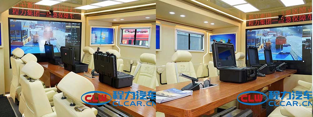 箱體:自動(dòng)調(diào)平支撐系統(tǒng)、車身骨架及蒙皮改制、車身防銹處理、聚氨酷發(fā)泡保溫處理、裙邊改制等兩側(cè)擴(kuò)展箱體:采用專用C型導(dǎo)軌,擴(kuò)展箱體采用獨(dú)立電動(dòng)控制,可電動(dòng)和手動(dòng)操作,舉升箱體: 液壓舉升支撐系統(tǒng),舉升高度1.9米,形成獨(dú)立的休息區(qū);內(nèi)飾系統(tǒng):車內(nèi)箱體選用內(nèi)飾板和皮料軟包。耐磨防滑地板革,頂部燈帶辦公系統(tǒng):會(huì)議區(qū)-真皮座椅、長(zhǎng)條形會(huì)議桌,可同時(shí)滿足多人會(huì)議,設(shè)備操作區(qū)-設(shè)備操作臺(tái),同時(shí)滿足2人操作休息區(qū):單人床,床熱;整車噴涂:采用標(biāo)準(zhǔn)噴涂,使用水性環(huán)保油漆,整車外觀可根據(jù)用戶需求進(jìn)行噴制,警示設(shè)備:長(zhǎng)排警燈、警報(bào)主控、方形警燈、閃屏燈等;配電系統(tǒng):配電箱、電器控制系統(tǒng)、漏電保護(hù)系統(tǒng)、接地纖、市電接入系統(tǒng)、充電系統(tǒng)、發(fā)電機(jī)、冷暖空調(diào)、換氣扇等通信設(shè)備:車載天線、衛(wèi)星調(diào)制解調(diào)器、衛(wèi)星電視天線、衛(wèi)星電話、衛(wèi)星線纜輔材等指揮系統(tǒng):計(jì)算機(jī)網(wǎng)絡(luò)設(shè)備-4GLTE系統(tǒng)、工控主機(jī)、路由器、交換機(jī)、彩色激光多功能一體機(jī)、4G車載圖像傳輸設(shè)備等:圖像采集設(shè)備-車頂攝像機(jī)系統(tǒng)、硬盤錄像機(jī)、車內(nèi)攝像機(jī)、視頻會(huì)議攝像機(jī)、單兵、專業(yè)攝像機(jī)、無人機(jī)等,語(yǔ)音調(diào)度設(shè)備-指揮調(diào)度平臺(tái)、集群中繼臺(tái)、集群車臺(tái)、車載短波電臺(tái)等;